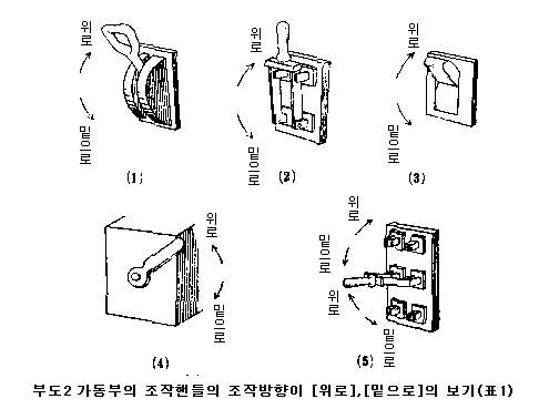 (1) ¿Á¿Ü¿ëÀÇ ´ëÇü °³Æó±â µî¿¡¼ "Æó"¿¡ Ưº°È÷ Å« ÈûÀ» ÇÊ¿ä·Î Çϰí, üÁß ¶Ç´Â ÆÈÀÇ ÈûÀ» ÀÌ¿ëÇÏ¿©¾ß ÇÒ °æ¿ì¿¡´Â ÇÚµéÀÇ Á¶ÀÛ¹æÇâÀÌ Ç¥3ÀÇ ¹Ý´ë·Î µÇ´Â °æ¿ìµµ ÀÖÀ¸³ª À̰ÍÀº ¿¹¿Ü·Î¼ ÀÎÁ¤ÇÑ´Ù(ºÎµµ1 ÂüÁ¶)