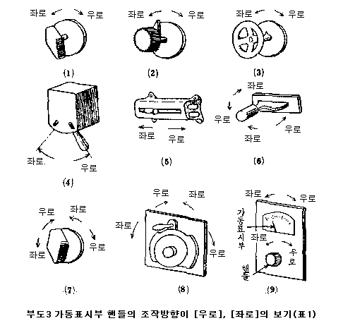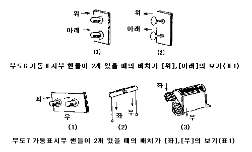ÇÚµéÀÌ Á¶ÀÛ¹æÇà ¹× ÇÚµéÀÌ µÎ °³ ÀÖ´Â °æ¿ì(Á¶·Î µÇ¾î ÀÖ´Â °Í, À̸¦Å׸é Çϳª´Â °³·Î¿¡, Çϳª´Â Æó·Î¿¡ »ç¿ëÇÏ´Â °Í)ÀÇ ¹èÄ¡´Â Ç¥1¿¡ Ç¥½ÃÇÏ´Â Á¾·ù·Î ÇÑ´Ù.