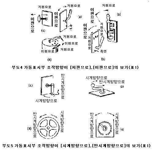(3) ÇÚµé°ú ÇѸöÀ¸·Î µÈ ȸÀü¿øÆÇ¿¡ ´«±ÝÀ» ¸¸µé¾î Á¶À۵Ǵ ¾çÀÇ ÇöÀç °ªÀ» Ç¥½ÃÇÏ´Â °Í¿¡ À־ ÇÚµéÀÇ Á¶ÀÛ¹æÇâÀ» Ç¥1°ú °°ÀÌ Çϱâ À§ÇÏ¿© ´«±ÝÀÇ ÁøÇà¹æÇâÀÌ º¸ÅëÀÇ °è±â¿Í ¹Ý´ë·Î µÇ¾î ÀÖ¾î Ç¥3¿¡ ÀûÇÕÇÏÁö ¾ÊÀ¸³ª À̰ÍÀ» ¿¹¿Ü·Î¼ ÀÎÁ¤ÇÑ´Ù.