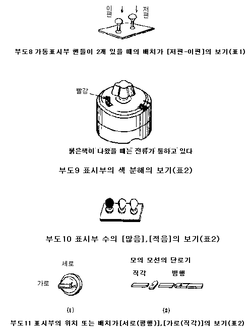 2°³ÀÇ »óŸ¦ Ç¥½ÃÇϴ ǥ½Ãµî, ¶Ç´Â Ç¥½ÃºÎÀÇ »öº°, ±¤µµ, À½·®, ¸éÀû, ¼ö, À§Ä¡, ¹èÄ¡´Â Ç¥2¿¡ Ç¥½ÃÇÏ´Â Á¾·ù·Î ÇÑ´Ù.